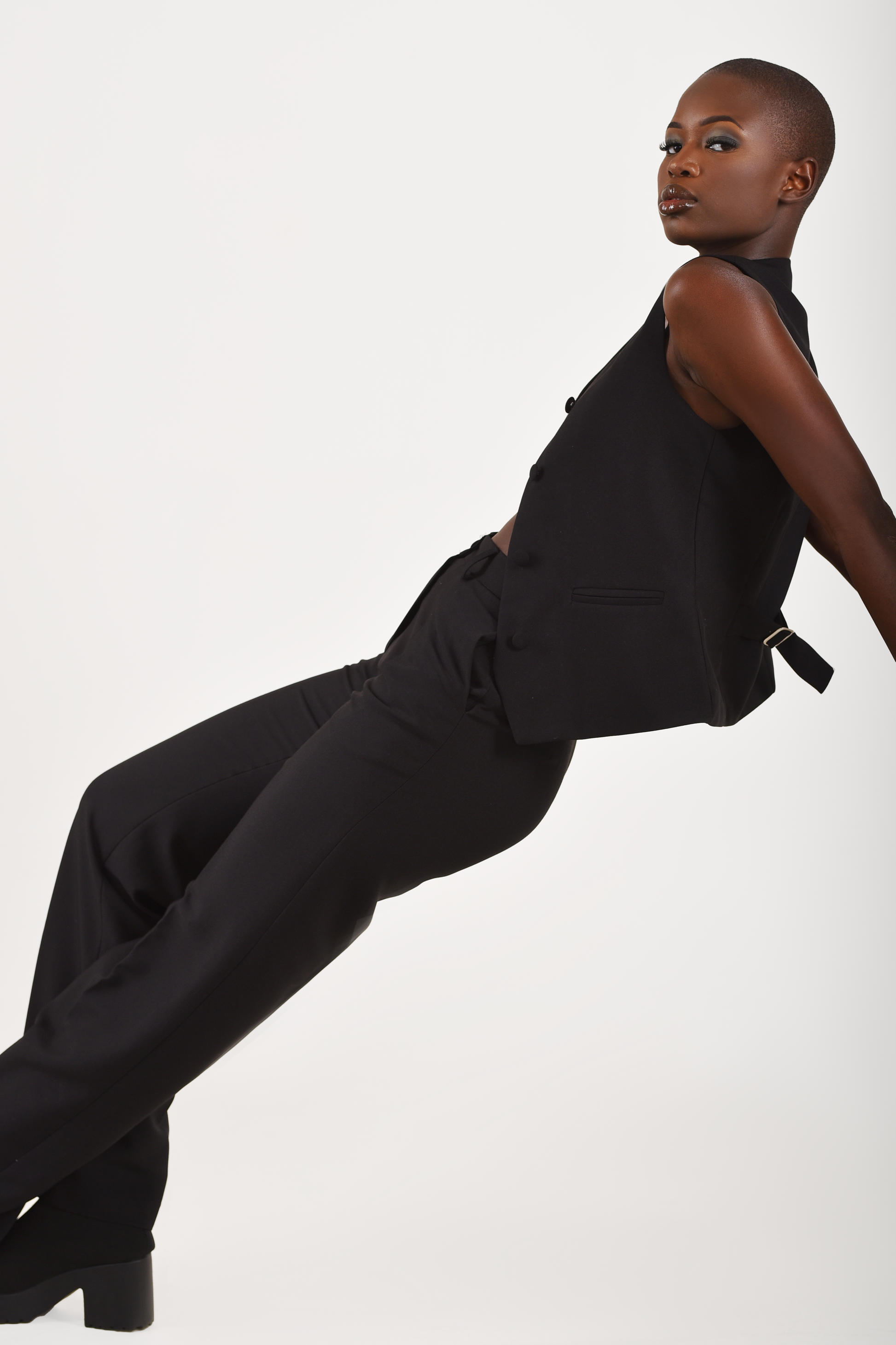 Bossy Half Coat - Black , Our signature two piece set in black color featuring a sleeveless button down half coat and long flowy pants ,work doesn't have to be boring in the "Bossy two piece set "